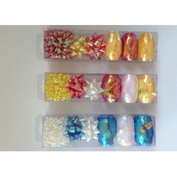 PET and Iridescent Gift Wrap Ribbon Set , christmas gift ribbon with star and egg bow Images |